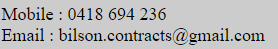 James Bilson is a contractor based in the Hastings Shire, Kempsey Shire, Nambucca Valley and Coffs Harbour District in NSW